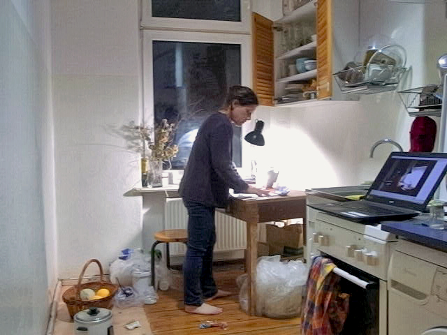 Im Frühjahr 2020 fange ich in meiner Küche spät abends an, Bilder zu drehen. Wegen einer Baustelle innerhalb der Wohnung, wirkt diese verwahrlost. Man sieht, wie ich lebe, arbeite, esse. Verschiedene Stimmen sprechen in mir und kommen zum Ausdruck. Die Zeit zieht sich hin, Stimmungen und Zustände verändern sich. Landschaftsbilder einer Reise in die Schweiz Ende Mai 2020 lassen aufatmen.