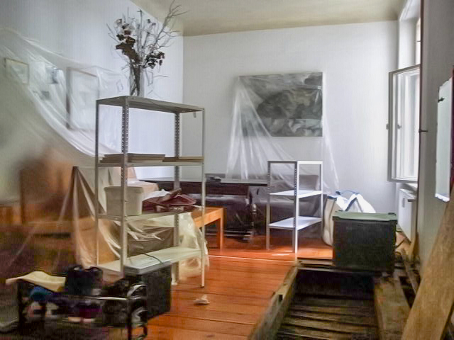 Selbstporträt im Raum mit gesprochenen Texten an Tagen des Rückzuges nach Ausbruch der sanitären Krise