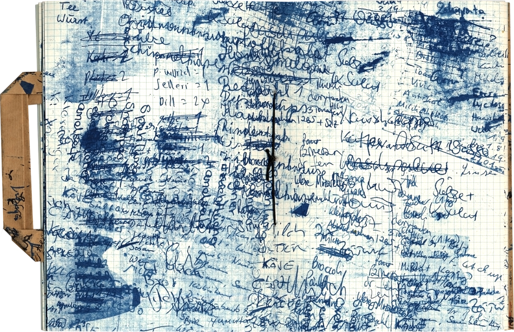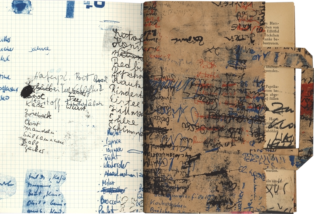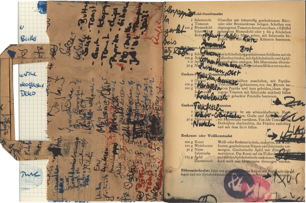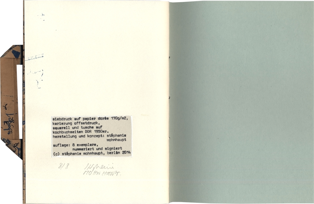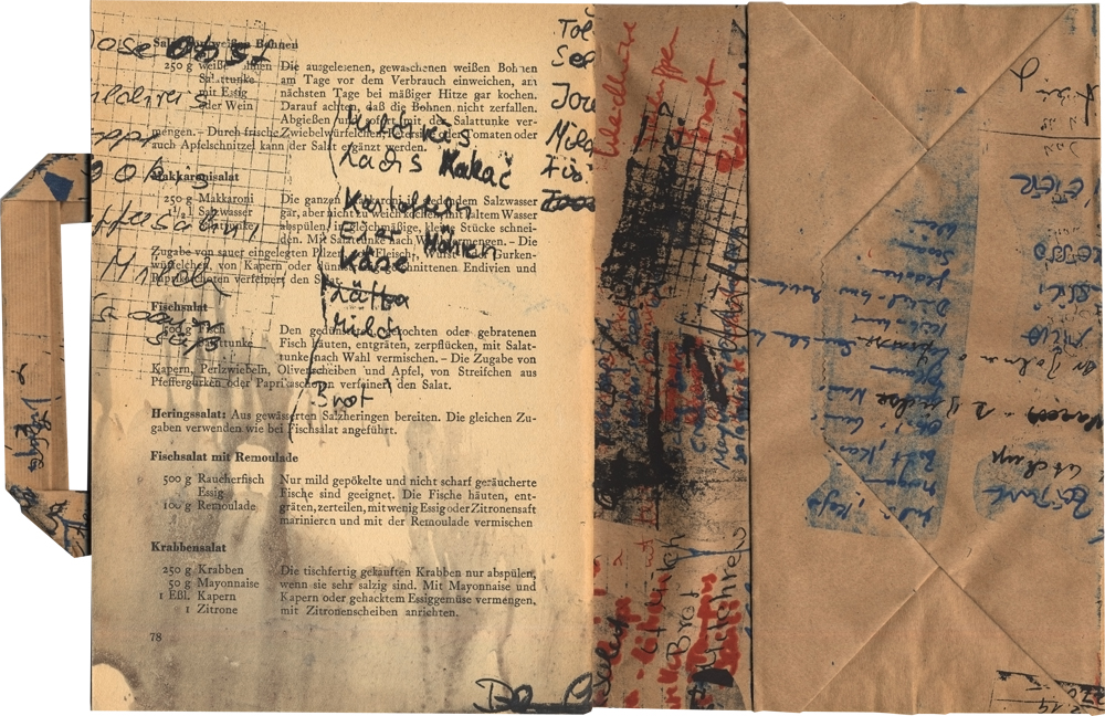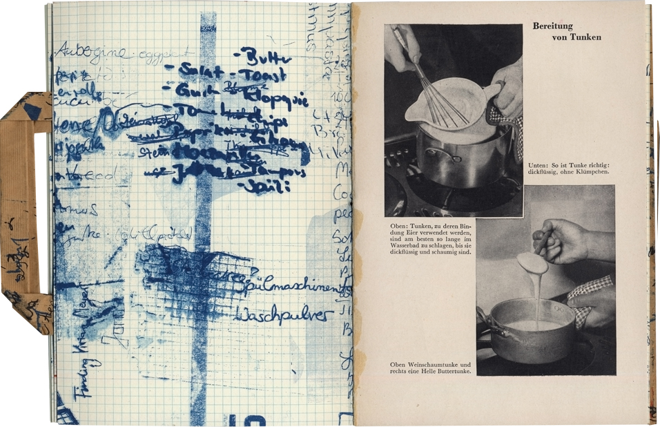 Siebdruck, Aquarell und Tusche auf Kochbuchseiten DDR 50er Jahre,